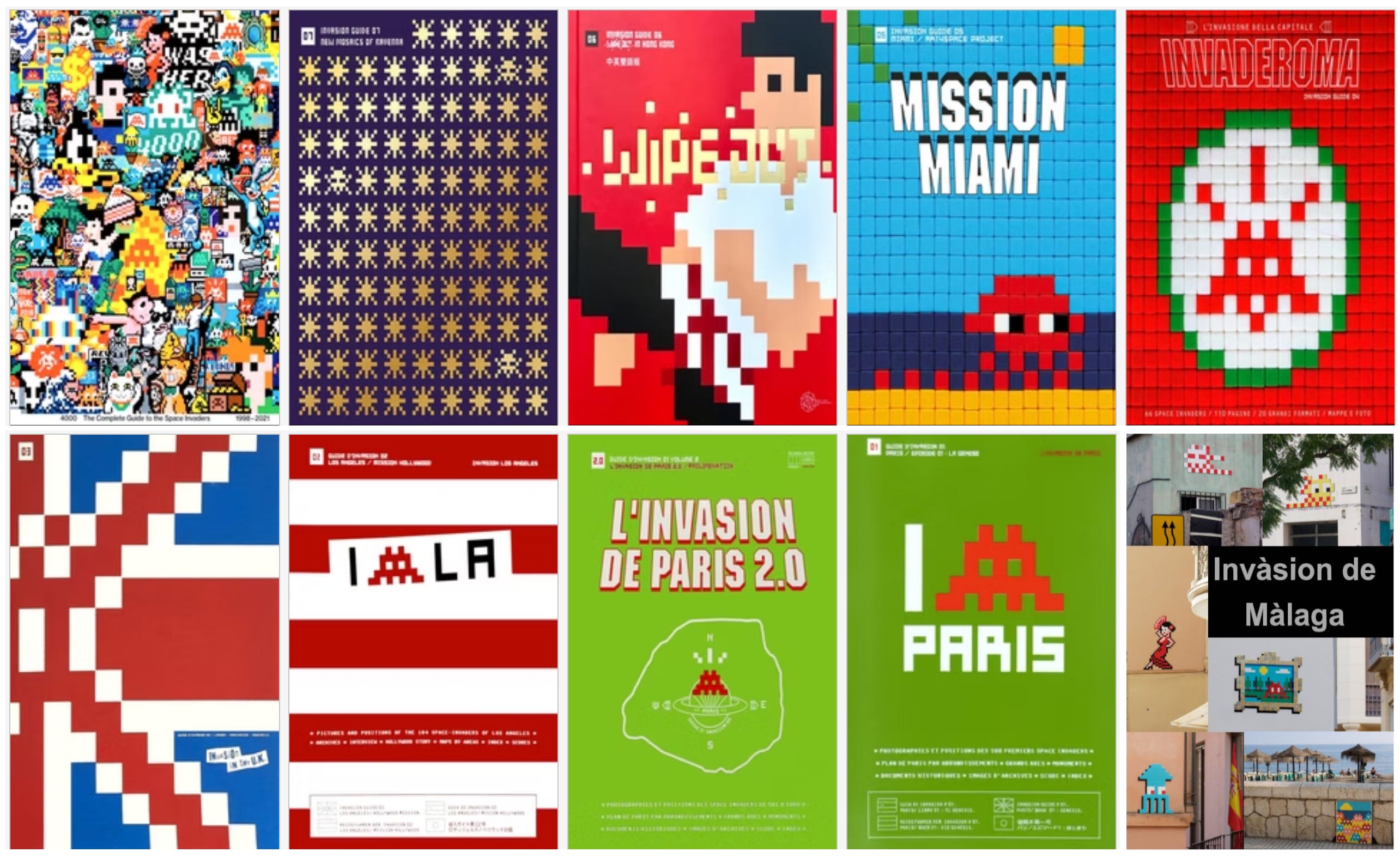 Over on Bluesky, user @JesseGamble.com reached out inquiring about any literature on the video game tile art that can be found in Paris. And (of course), there IS INDEED a series of books, from renowned artist INVADER. I didn’t quite have them all catalogued, so spent some time this week getting the full collection listed.